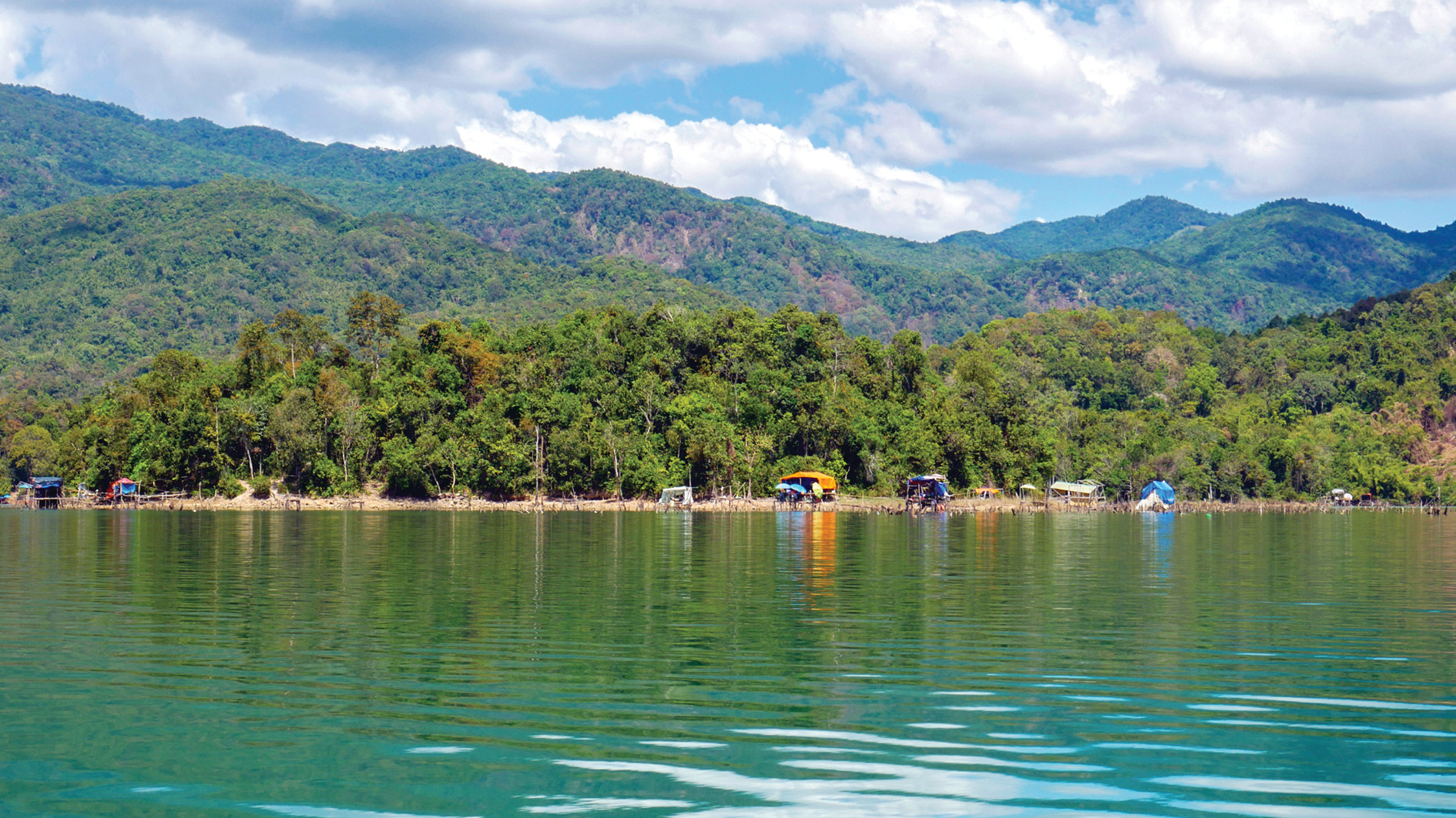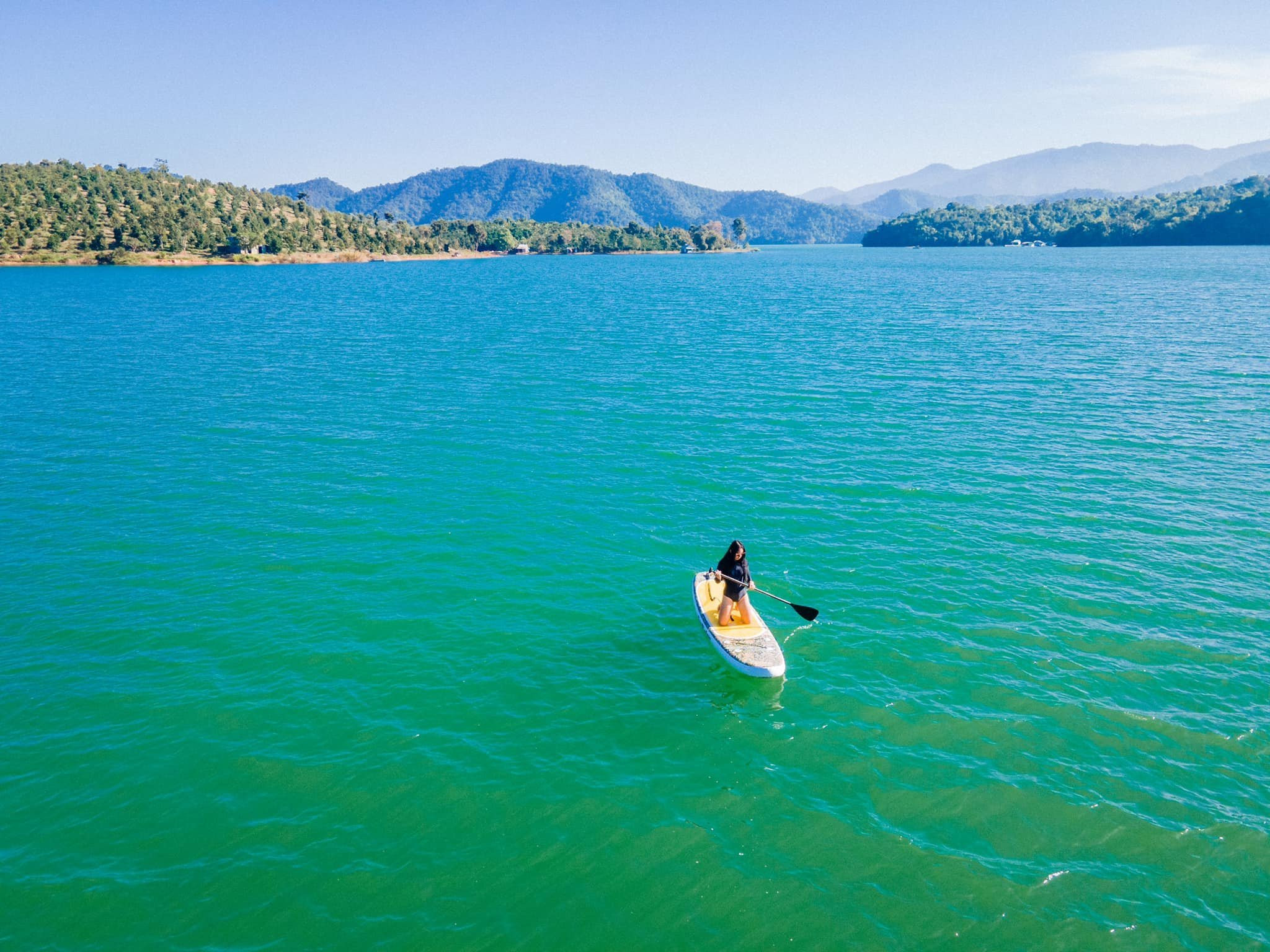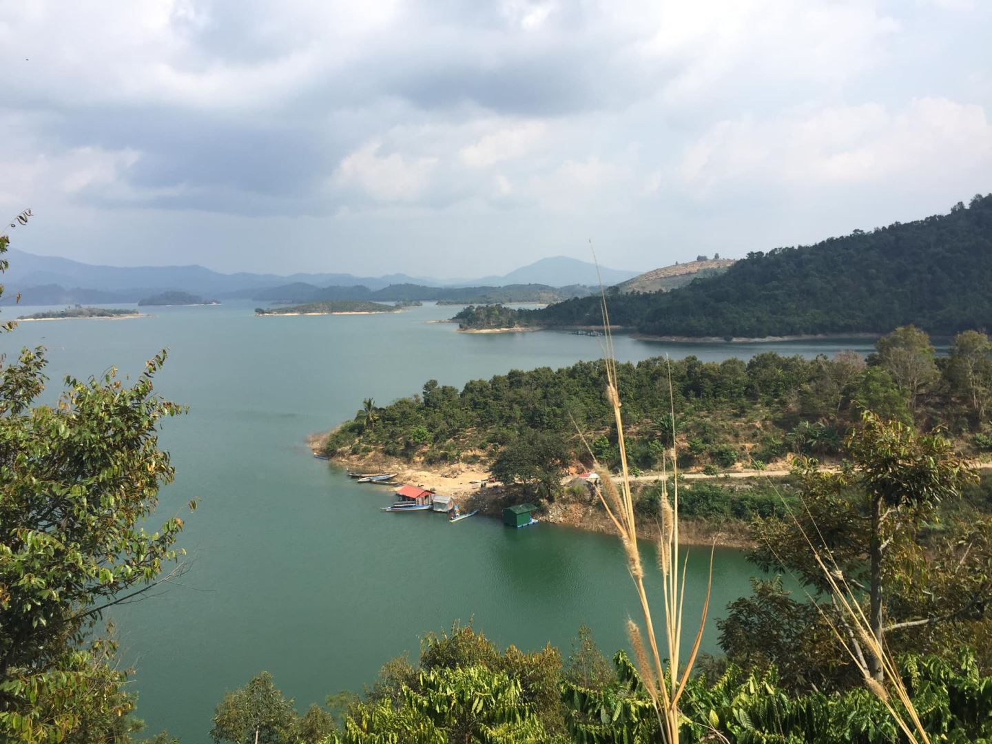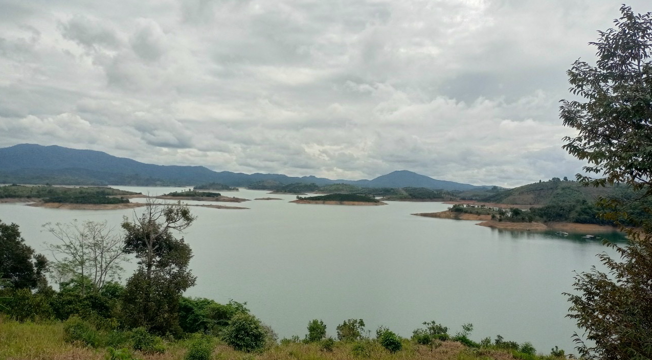 Với diện tích mặt nước gần 200 héc-ta được bao bọc bởi gần 20 ngọn núi lớn nhỏ khác nhau, hồ Đa Mi trông càng kỳ bí và quyến rũ. Dù đứng ở một triền đồi rộng mà người địa phương gọi là “sân bay”, hay từ một ngôi chùa nhỏ ven núi tôi đều “lặng người” trước vẻ thư thái đến ngỡ ngàng của mặt hồ mênh mông màu ngọc bích. Đã vậy, giữa sự bình yên của sắc xanh ấy còn xuất hiện nhiều “nốt lặng” là những cù lao vàng nâu như một bức tranh thủy mặc đủ sức hấp dẫn để níu chân không chỉ tôi mà chắc chắn còn với nhiều du khách khác khi “vô tình” lạc bước đến hồ Đa Mi.