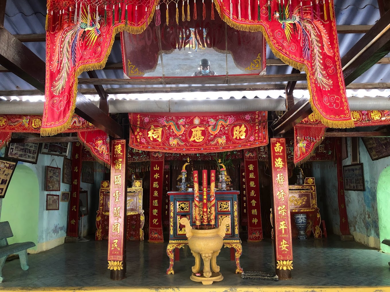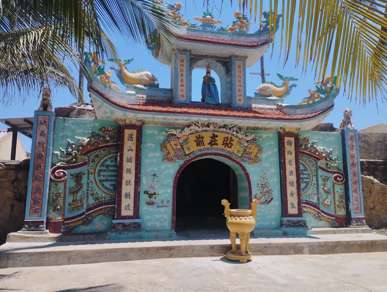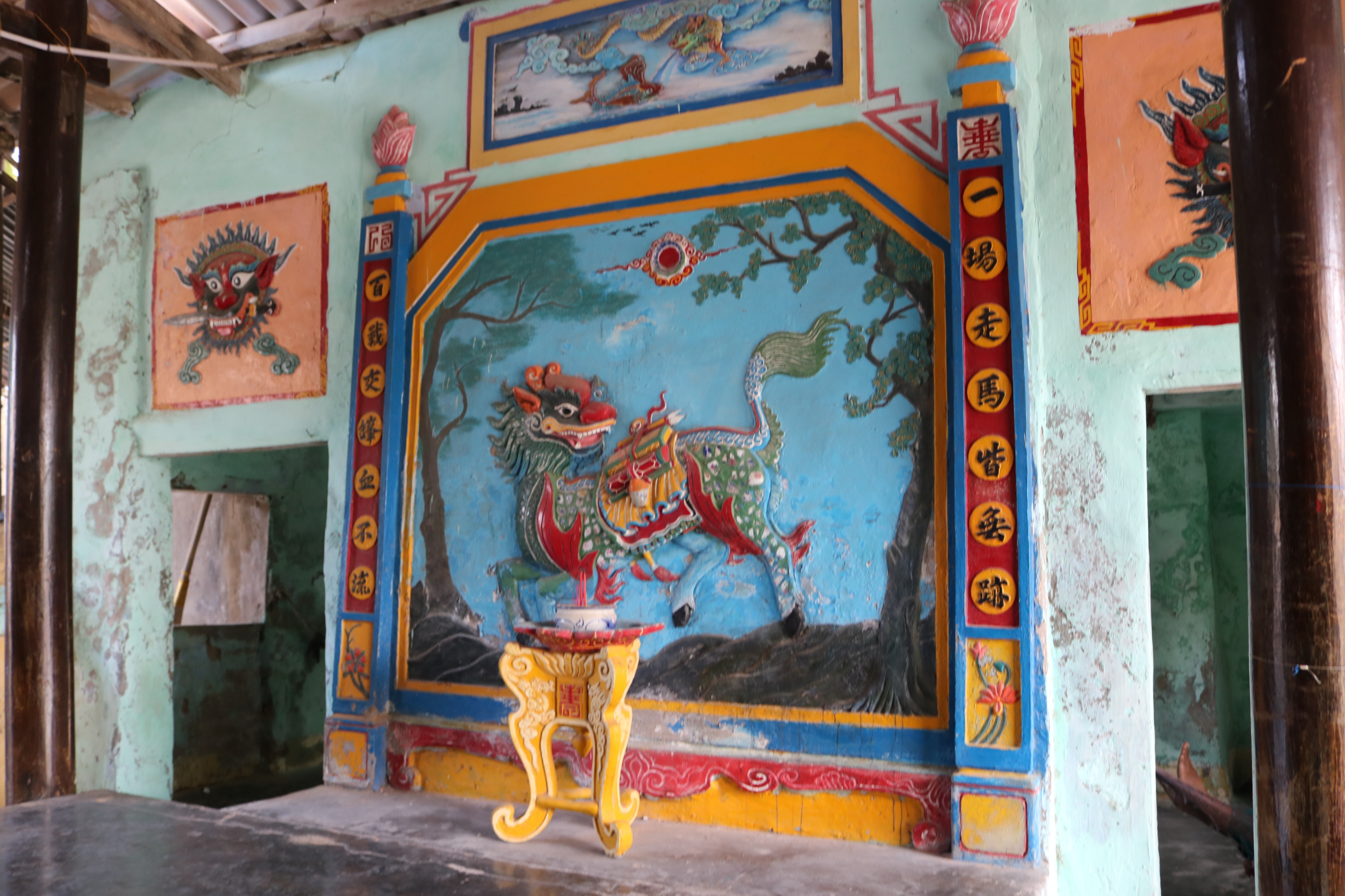 Khu chánh điện có ba nếp nhà mái kép đặt song song theo bố cục chữ Tam. Kết cấu công trình theo lối “chồng rường” bằng loại gỗ quý hiếm, đá phiến và san hô. Hệ thống cửa thông nhau theo kiểu mái vòm tạo cảm giác sâu thẳm, ấm cúng. Chánh cung có ba gian, điện thờ năm gian, phía sau là hệ thống tẩm thờ lưu giữ hài cốt ông Nam Hải.