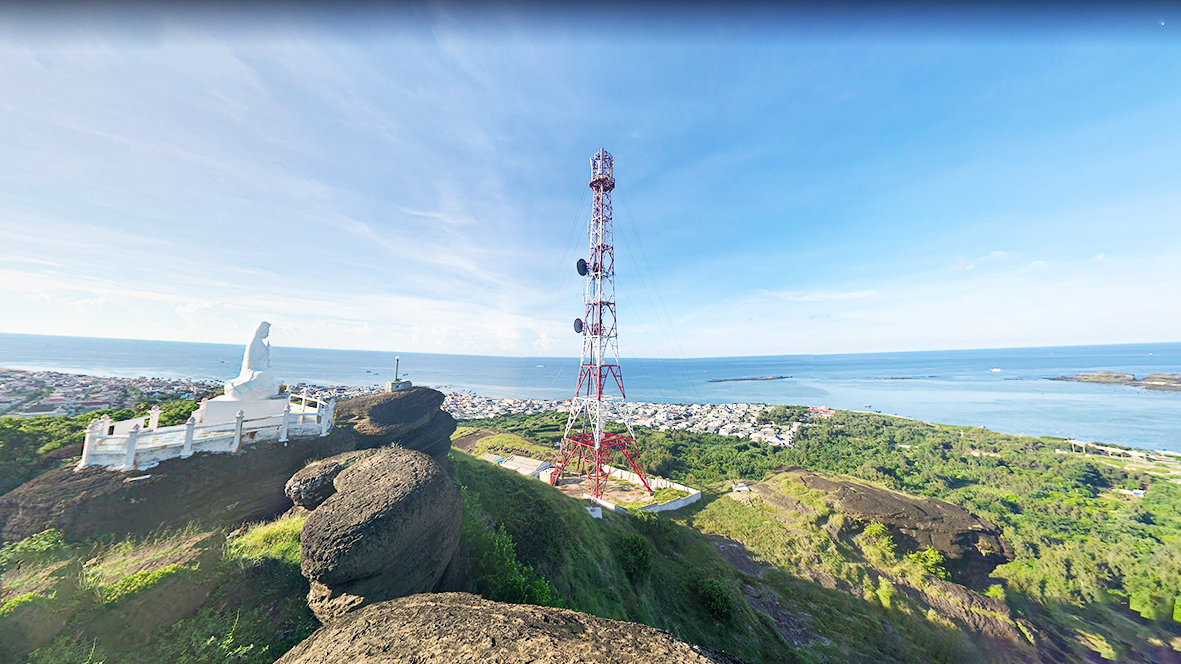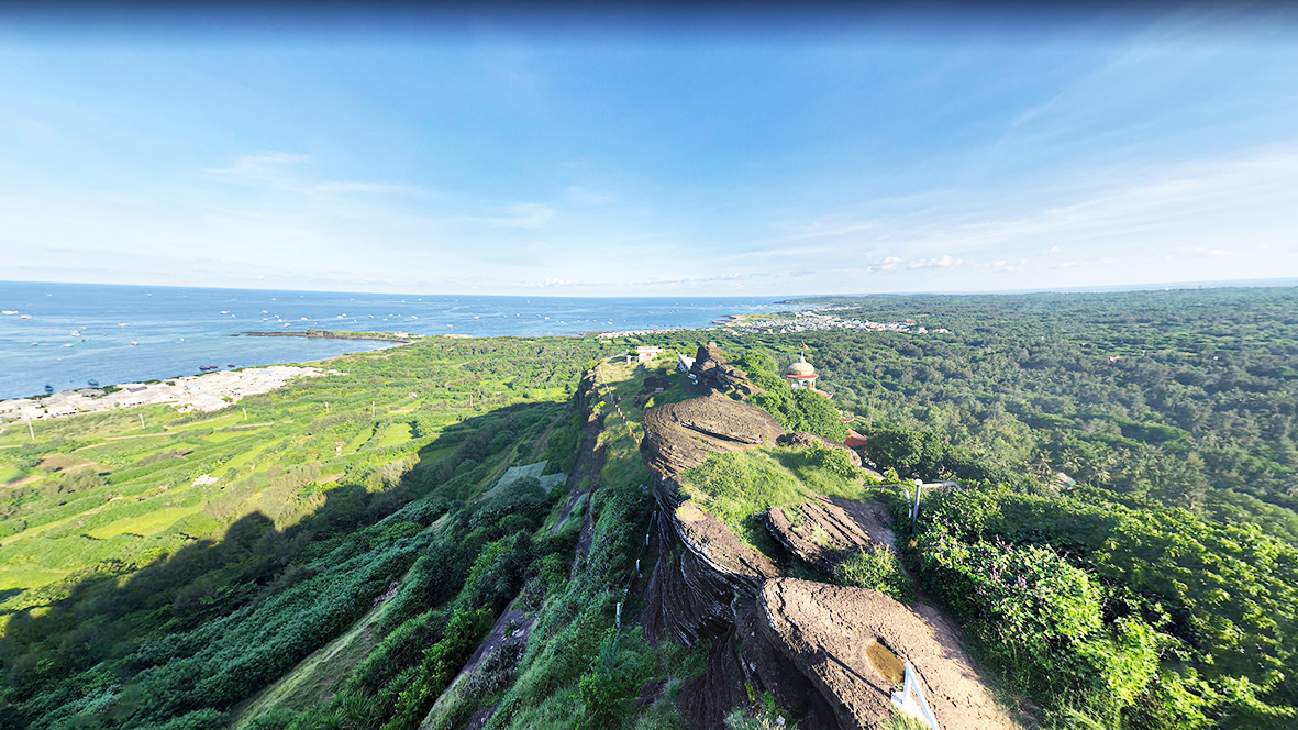 Sau khi leo một con dốc khá cao để lên đến đỉnh, du khách sẽ được chiêm ngưỡng phong cảnh hữu tình và tầm nhìn bao quát bắc đảo, ngắm nhìn những tuyệt tác do gió và nham thạch núi lửa để lại, xa xa là những mái nhà tại xóm đảo Long Hải.